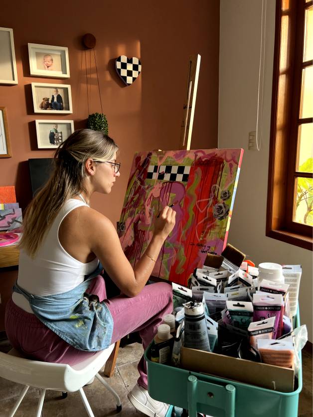 Soy artista autodidacta, entré al mundo del arte a modo de terapia y quedé fascinada de lo bien que me siento cuando pinto.
